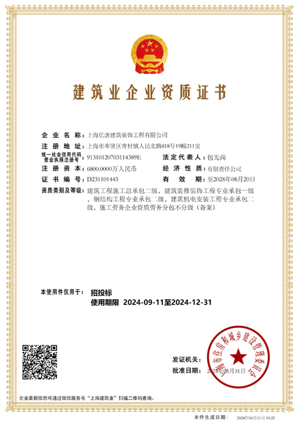 歡迎光臨 上海億唐建筑裝飾工程有限公司 官方網(wǎng)站!榮獲國家裝飾工程施工一級資質(zhì),國家裝飾工程設(shè)計乙級資質(zhì)。